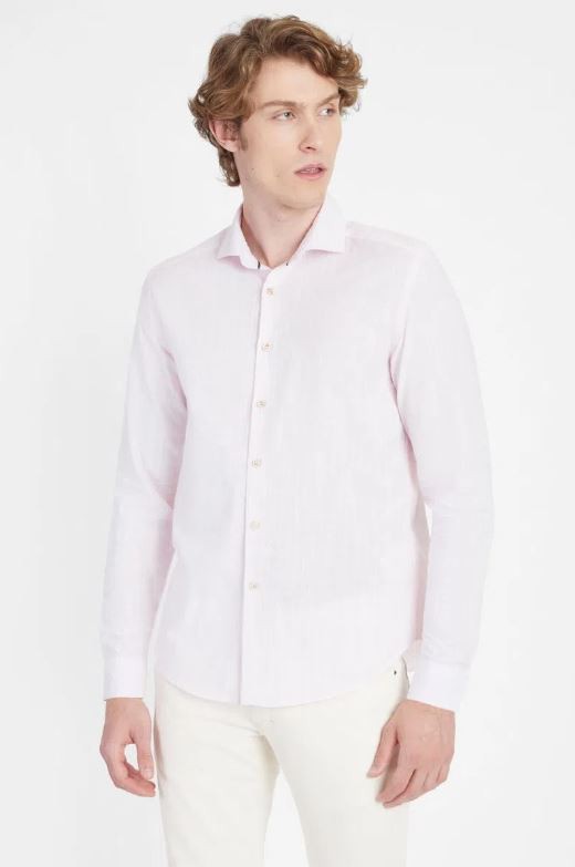 CAMISA MANGA LONGA SLIM FLAMÊ LISTRADA ROSA ARAMIS ML.05.0082