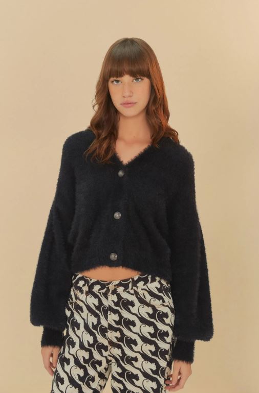 CARDIGAN FEMININO CURTO PELINHO PRETO FARM 337367