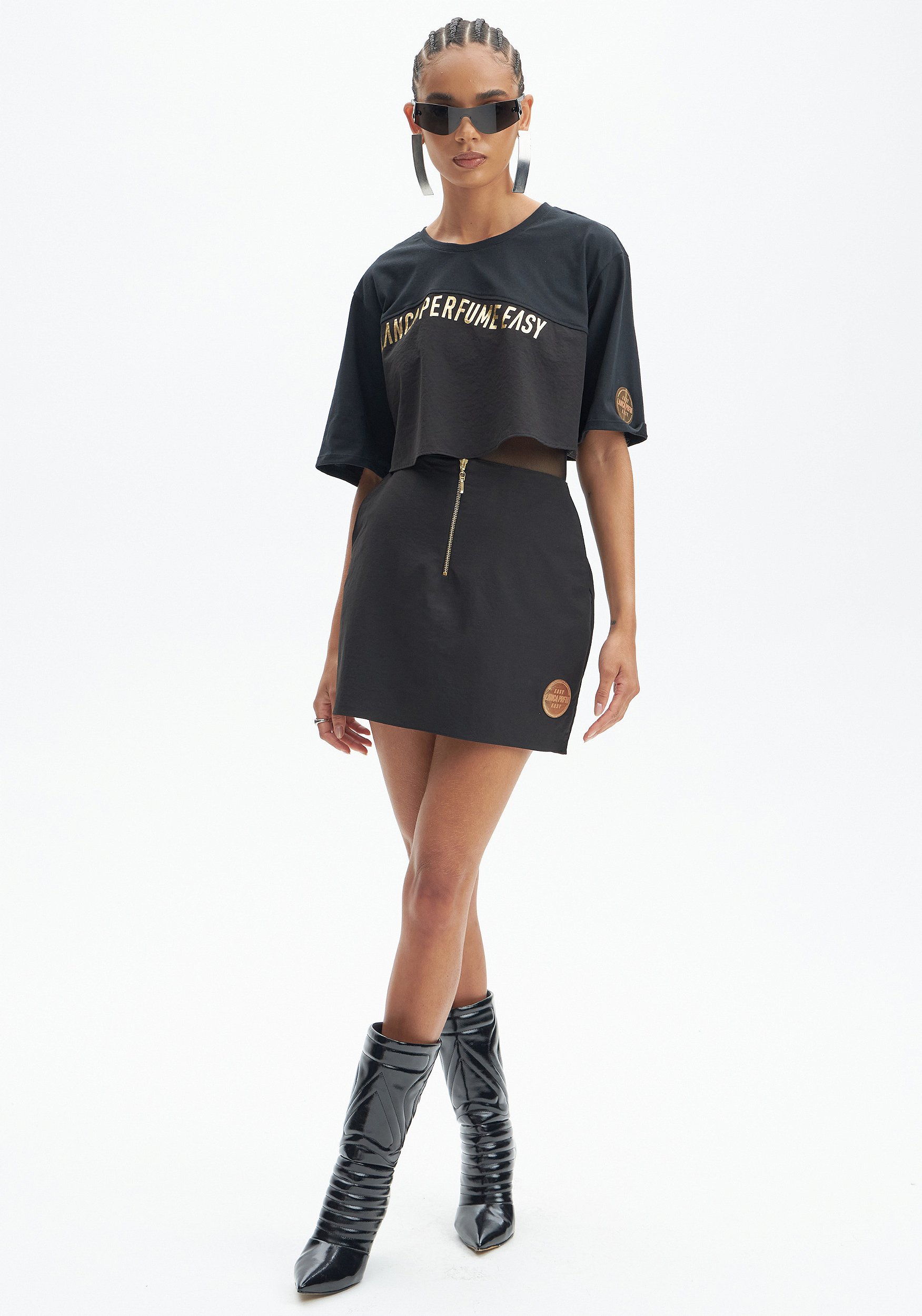 SAIA CURTA COM ZIPER FRONTAL PRETA LP EASY 502SA002040