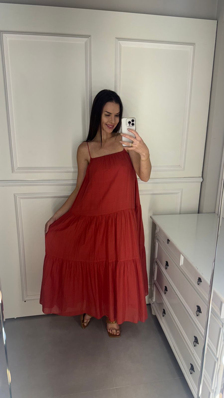 Vestido alcinhas marias. com alças finas e corte fluido, é perfeito para momentos especiais ou um passeio casual. o decote reto traz um toque moderno, enquanto os babados em camadas adicionam movimento e leveza à peça. a combinação ideal entre conforto e estilo. FARM RIO original - verão 26.