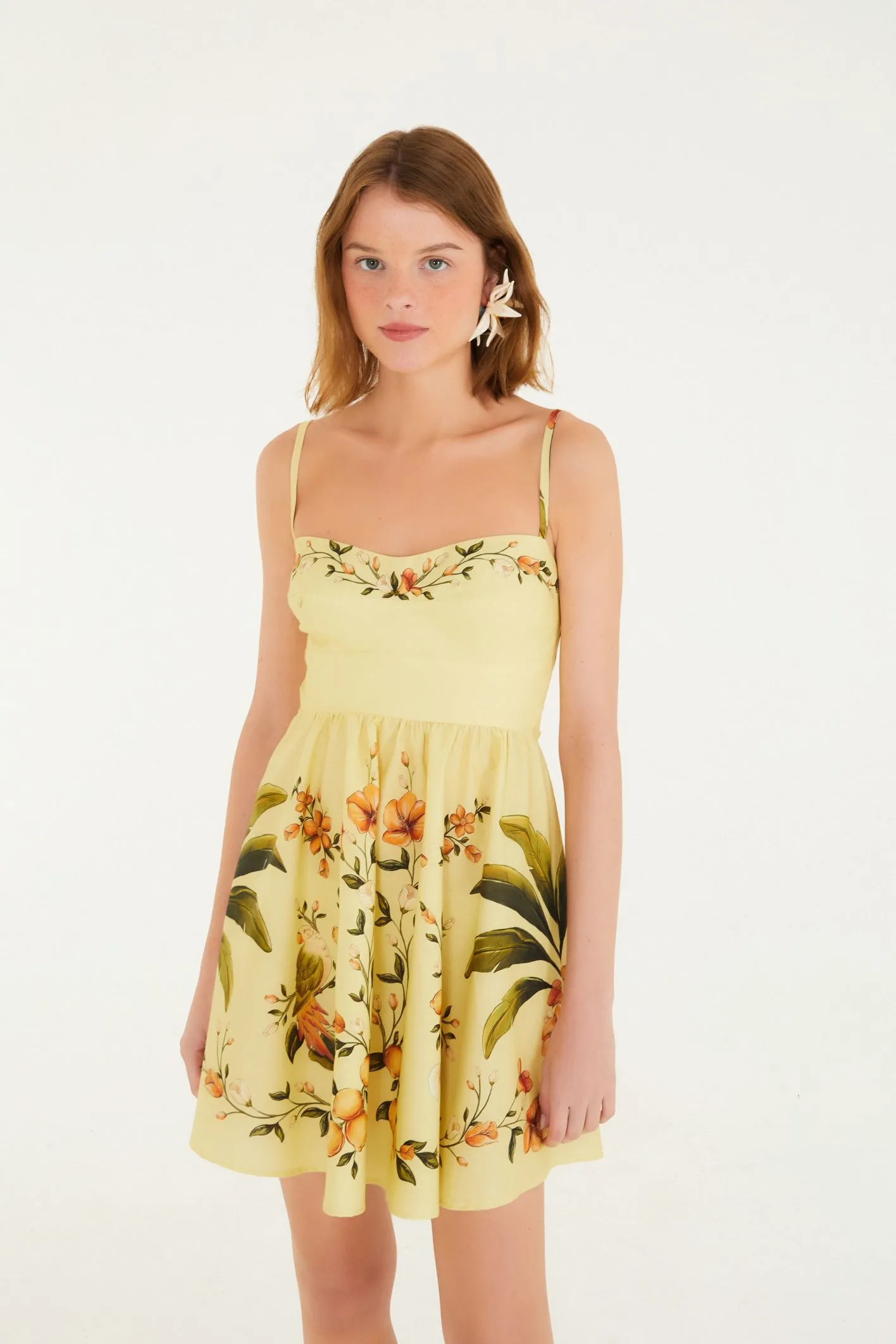 Vestido curto estampado bosque chic. com alças finas e decote suave, é a escolha perfeita para um passeio ao ar livre ou um encontro informal. a modelagem solta e fluida proporciona movimento e leveza, enquanto os detalhes sutis elevam o charme da peça. ideal para compor looks versáteis com um toque de originalidade. FARM RIO original - verão 26.