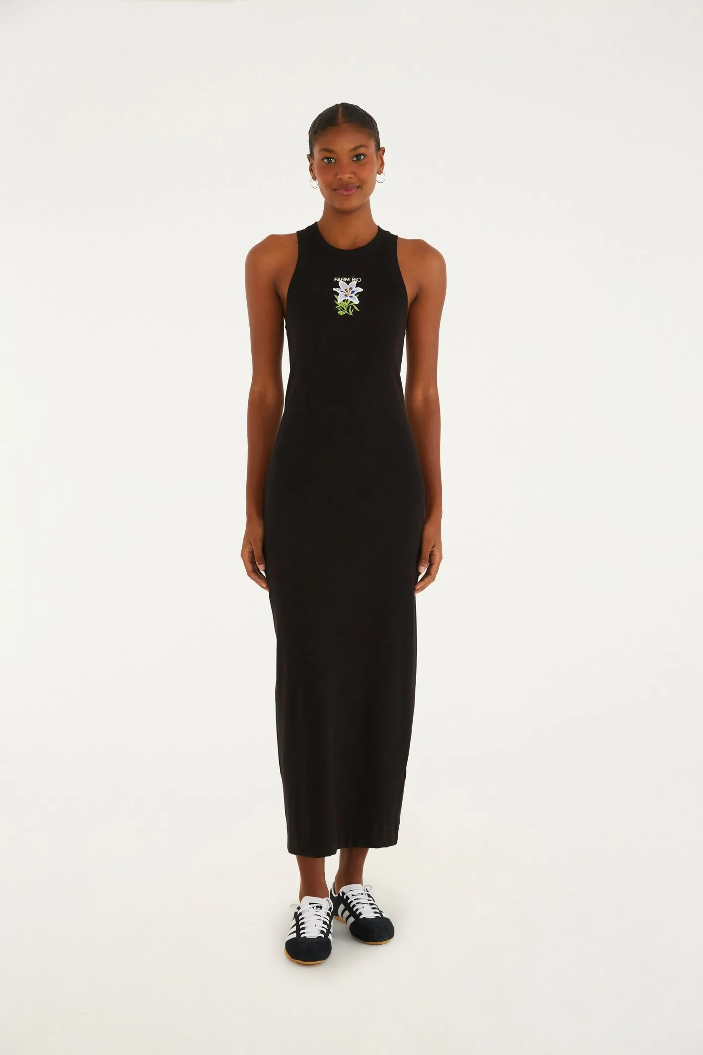 Vestido midi rib maxi flor. possui gola levemente alta e alças largas, trazendo conforto e modernidade ao visual. o comprimento midi é elegante e versátil, ideal para diferentes ocasiões, do casual ao encontro especial. a textura do tecido adiciona um toque especial à peça. FARM RIO original - verão 26.